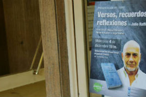 El legislador porteño Julio Raffo presentó su nuevo libro “Versos, recuerdos, reflexiones” (Editorial Galerna), primera obra de poesía dentro de su amplia producción jurídica y política. “Es un libro de versos, de pelea, de golpear en el ámbito judicial e intelectual en el que se mueve el autor”, según lo describió al presentarlo el ensayista Angel Núñez. Este libro de Raffo, legislador de Proyecto Sur en la ciudad, lleva prólogo del escritor Miguel Bonasso, quien participó en esa presentación en la Universidad del Museo Social Argentino (UMSA). Bonasso lo consideró “un libro muy audaz, que salta desde la evocación de Santa Teresa a la prosa más rante y canera de Buenos Aires”. Todo eso, tan versátil, de alguna manera se transforma en Raffo en vetas que se juntan, dijo.
