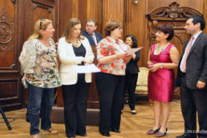 Foto : La ministra y las diputadas recibieron de manos de Julián Auge un diploma en agradecimiento por su presencia