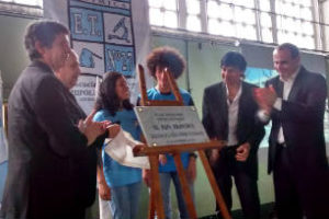 A través de una proyección audiovisual se difundió el mensaje de Hugo Morelli y Alberto D`Arezzo, dos compañeros de Jorge Bergoglio en la promoción 1955.El diputado Héctor Huici junto al rector profesor Néstor Policaro, dos alumnos avanzados, el presidente de la Comuna 10 Agustín Marcos Ferrari y el Subsecretario Gulmanelli descubrieron la placa que será colocada en el frente de la Escuela Técnica Nº 27. A continuación, la ingeniera agrónoma María Eugenia Cuerpo, rectora de la Escuela Técnica de Jardinería «Cristóbal M. Hicken», hizo entrega de un retoño del olivo que como símbolo de la paz fue plantado en el año 2005 en la Plaza de Mayo, por el entonces arzobispo de Buenos Aires Jorge Mario Bergoglio durante un acto ecuménico masivo.