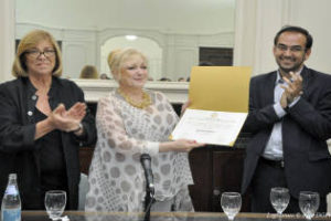Foto : La diputada Lía Rueda (PRO), la actriz Graciela Pal y el diputado Francisco Quintana (PRO) luego de hacer entrega del diploma de reconocimiento a la homenajeada