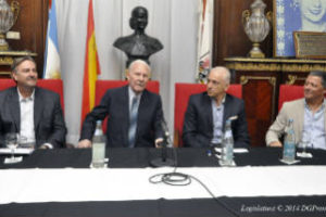 Foto :El diputado Helio Rebot, Alberto Nembrini, Walter Nelson y el diputado Jorge Garayalde durante el reconocimiento que se realizó en el salón Eva Perón