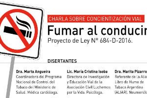 Los diputados porteños de PRO, Roberto Quattromano, Daniel Del Sol y Cristina García De Aurteneche, debatieron junto a especialistas sobre el proyecto de Ley que presentaron para prohibir el cigarrillo mientras se maneja.La charla se llevo a cabo ayer por la tarde en el Salón Montevideo de la Legislatura de la Ciudad Autónoma de Buenos Aires, situada en Perú 160.