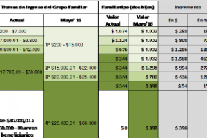 El presupuesto destinado a las asignaciones familiares se va a incrementar, a partir de este mayo, en un 72 por ciento, lo que permitirá modificar simultáneamente los tramos y topes que avalan su percepción.Para concretar esta medida, el presupuesto incorporado será de 700 millones de pesos durante este año.Para 2016, la inversión social en asignaciones familiares, prevista anteriormente en 970 millones de pesos, pasará a 1.670 millones.