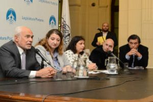 Foto : Juez Lozano, diputadas Muiños y Oliveto, ministro Ocampo y diputado Presti, en la inauguración de las deliberaciones. <a>