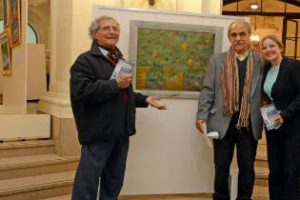Foto: El escultor Pujía, el pintor Páez y la legisladora Estebarena. <a>