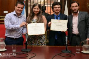 Los alumnos de la Escuela Técnica ORT y de la Escuela Superior de Comercio Carlos Pellegrini, Ian Manuel Fleschler y Carla Crucianelli, respectivamente, participaron de la 57° Olimpíada Internacional de Matemática -OIM- realizada en Hong Kong, entre el 6 y el 16 de julio del corriente año, y junto al equipo recibieron medallas de bronce y menciones de honor. Los legisladores Agustín Forchieri (PRO) y Maximiliano Ferraro (CC) encabezaron el evento en el salón «Eva Perón» y entregaron los diplomas de distinción.