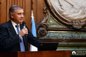 Foto: Ministro Oscar Aguad habla en el salón San Martín de la Legislatura porteña.