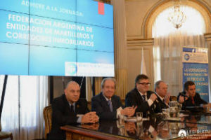 El primer panel estuvo conformado por el secretario del Centro de Corredores Inmobiliarios de la Ciudad Autónoma de Buenos Aires, Eduardo Difini; el presidente de la Federación Nacional de Entidades y Colegios de Martilleros y Corredores Inmobiliarios, Roberto Spalanzani; el presidente del Colegio Profesional Inmobiliario de la CABA, Dr. Héctor Dodorico; el presidente de la Asociación Americana de Balanceadores, Martilleros y Corredores Públicos, Juan Carlos de Caria, y el vicepresidente del Colegio Superior de Martilleros y Corredores de la provincia de Buenos Aires y presidente del Colegio de Martilleros y Corredores Públicos del partido de General Pueyrredón con sede en Mar del Plata, Miguel Donsini.
