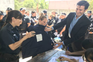 Autoridades del ministerio de Seguridad de la Provincia de Buenos Aires, en representación del ministro Cristian Ritondo, entregaron 380 chalecos con tecnología RB3 con chip para los efectivos policiales de la Jefatura Departamental de Exaltación de la Cruz, logrando, de esta manera, que cada policía tenga su propio chaleco para trabajar. Durante la ceremonia estuvieron presentes el jefe Unidad Ministro de esta cartera, Raúl Sancho; y el jefe de la Departamental, Comisario Mayor Martín Gamarra; entre otras autoridades ministeriales y policiales.