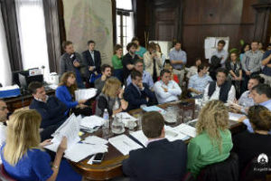 La reunión que se efectuó en la sala de la Comisión de Presupuesto, fue presidida por la diputada Paula Villalba y participaron sus pares Francisco Quintana (VJ) y Mariano Recalde (UC), Vicepresidentes Primero y Segundo de la Legislatura; el titular del bloque oficialista Agustín Forchieri, Maximiliano Ferraro, Paola Micchielotto, Lía Rueda, Cristina García, Victoria Roldán Méndez, Daniel Presti, José Luis Acevedo, Claudio Romero, Claudio Cingolani (VJ); Juan Nosiglia, Patricia Vischi (SUMA+), Javier Andrade (UC); Gabriel Solano y Myriam Bergman, titulares de los bloques FI y MST-NI respectivamente.Precisamente en la sesión de la víspera el Cuerpo parlamentario a pedido del bloque mayoritario acordó considerar el dictamen firmado este viernes como moción de tratamiento preferencial para la próxima sesión del jueves 10.