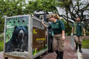 Luego de aproximadamente 22 horas de viaje, los osos de anteojos (Tremarctos ornatus) llegaron al santuario “The Wild Animal Sanctuary” ubicado en el estado de Colorado en los Estados Unidos. Los osos fueron trasladados al Aeropuerto Internacional de Ezeiza para tomar un vuelo a Dallas (el mismo en el que se trasladó a la orangutana Sandra) y de allí se procedió a un traslado terrestre hasta su destino final. Se trata de tres ejemplares: Pina, una hembra de 19 años nacida en el “Tierpark Berlin” de Alemania, Nico de 17 años nacido en el mismo lugar y Tupak un macho de 13 años nacido en el antiguo Zoológico de Buenos Aires.