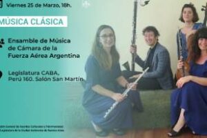 Mañana viernes 25 de marzo a las 18 horas se realizará el primer concierto presencial de música clásica del 2022, en el Salón San Martín del Palacio de la Legislatura, Perú 160. En el marco del mes de la mujer, se presentará el Ensamble de Cámara de la Fuerza Aérea Argentina interpretando un repertorio inspirado en la historia de mujeres que sobrevolaron el cielo argentino. El evento es organizado por la Dirección General de Asuntos Culturales y Patrimoniales de la Legislatura de la Ciudad Autónoma de Buenos Aires. El Ensamble de Música de Cámara de la Fuerza Aérea Argentina nace en 2019 con el objetivo de difundir el patrimonio histórico y aeronáutico a través del lenguaje artístico musical y proyecta la presencia institucional de la Fuerza Aérea Argentina desde una perspectiva que se alinea con la democratización y pluralidad de la cultura.
