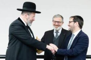 Tras el homenaje, el Gran Rabino participó de un encuentro con dayanim en el Rabinato de la AMIA, donde abordó diferentes temas halájicos, momento que contó con la presencia del Rab Samuel Levin.