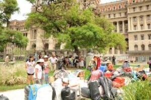 Los ocupantes son los miembros del Tercer de la Paz de Jujuy que realizaban una “vigilia” frente a Tribunales para reclamar contra la reforma de la Constitución de la provincia de Jujuy. Luego, con el correr de los días y con el incremento de personas viviendo ahí, el lugar se había transformado en un asentamiento precario que generaba el malestar de los vecinos y transeúntes. Tras recibir la orden, la Policía de la Ciudad con el apoyo de personal de Espacio Público e Higiene Urbana y operadores del BAP procedieron a levantar el asentamiento.
