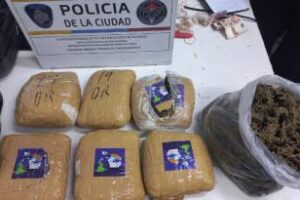 Ya dentro de la vivienda, los policías vieron varios bultos encintados, armas de fuego y municiones.Tras realizar la consulta con el juez de turno los oficiales procedieron a secuestrar 6 panes de marihuana (3 kilogramos), 2 panes de cocaína (2 kilogramos), una bolsa con 962 gramos de marihuana, 4 paquetes con cocaína de 130 gramos, 8 bolsas con pasta base (705 gramos), una pistola Bersa Thunder 9 milímetros y una pistola Taurus 9 milímetros con numeración suprimida.